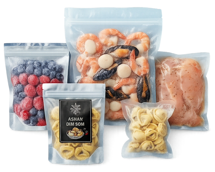 Materials are selected for flexibility at low temperatures, resistance to cracking, and consistent performance during packing and storage. With custom printing and structure options, our formats are freezer-ready and built for reliability.